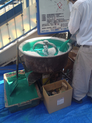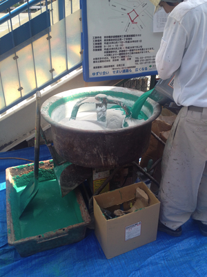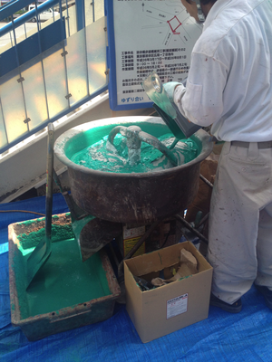 The green liquid is some sort of sealant mixed with the powder