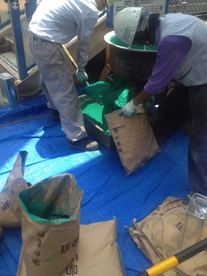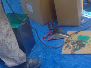 mixing green goo and sand